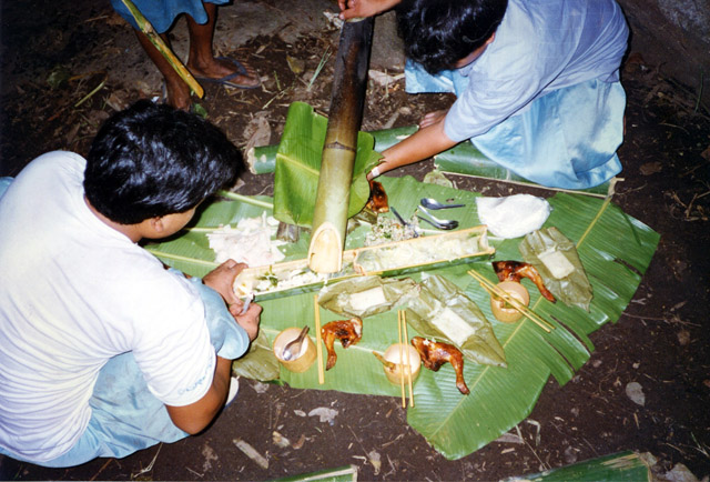 Previous Image Next Image Dinner in the jungle cooked and served in bamboo Dinner in the jungle cooked and served in bamboo Dinner in the jungle cooked and served in bamboo