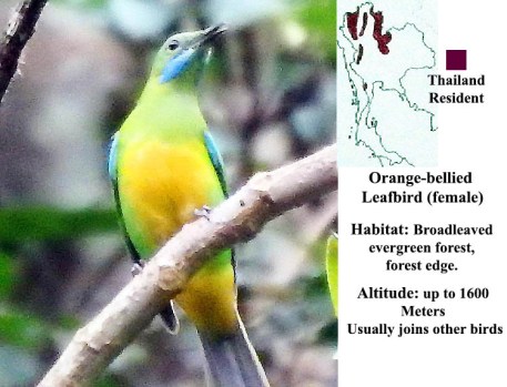 Previous Image Next Image Orange-bellied Leafbird (Female) Orange-bellied Leafbird (Female) Orange-bellied Leafbird (Female) photo with location map and habitat information