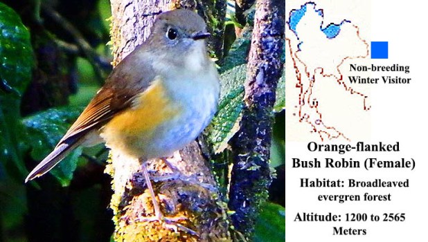 Previous Image Next Image Orange-flanked Bush Robin (Female) Orange-flanked Bush Robin (Female) Orange-flanked Bush Robin (Female) bird photo with location map.